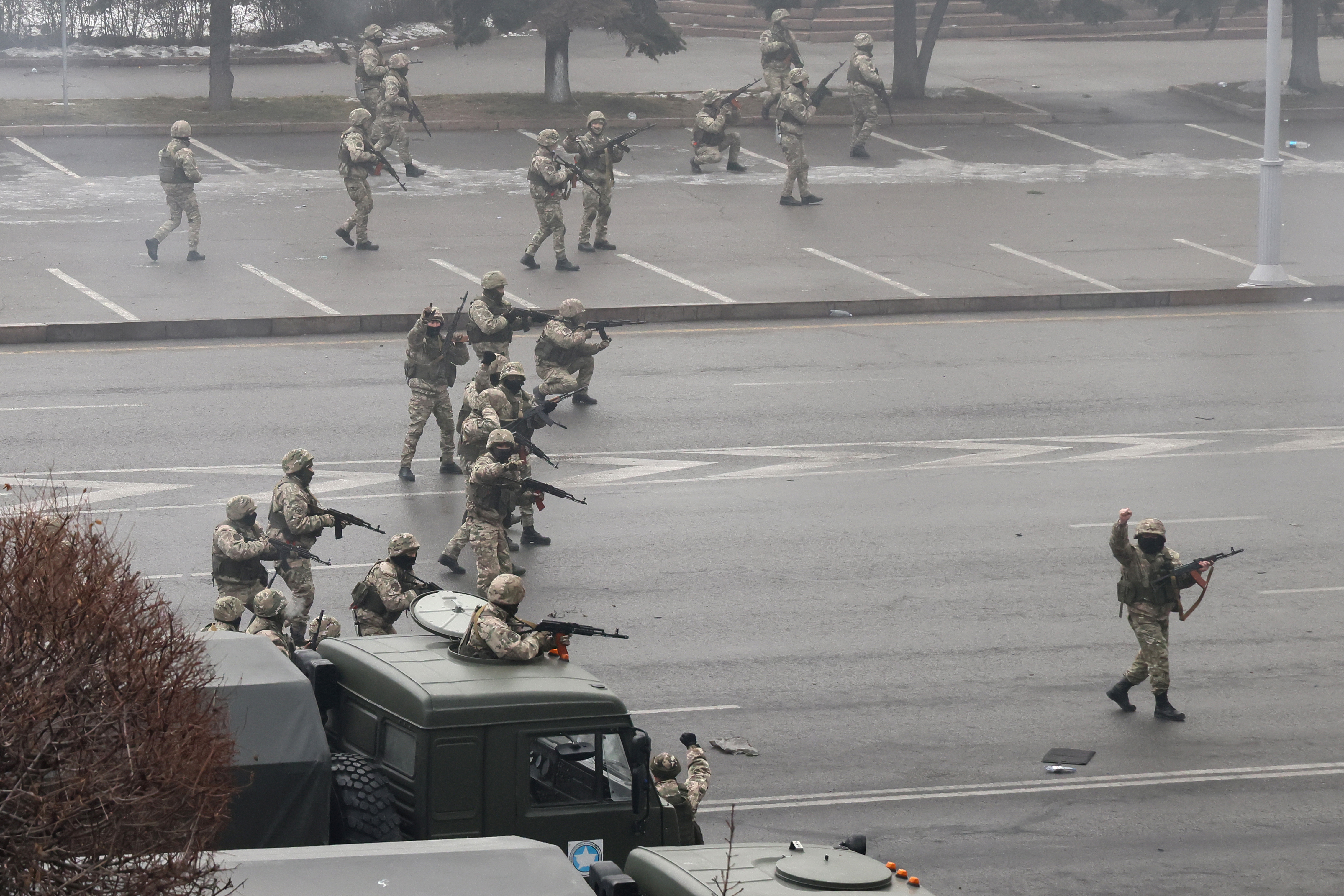 Kazahstānas policija paziņojusi, ka naktī uz ceturtdienu Almati nogalinājusi "desmitiem" protestētāju, kas mēģināja ieņemt administratīvās ēkas.