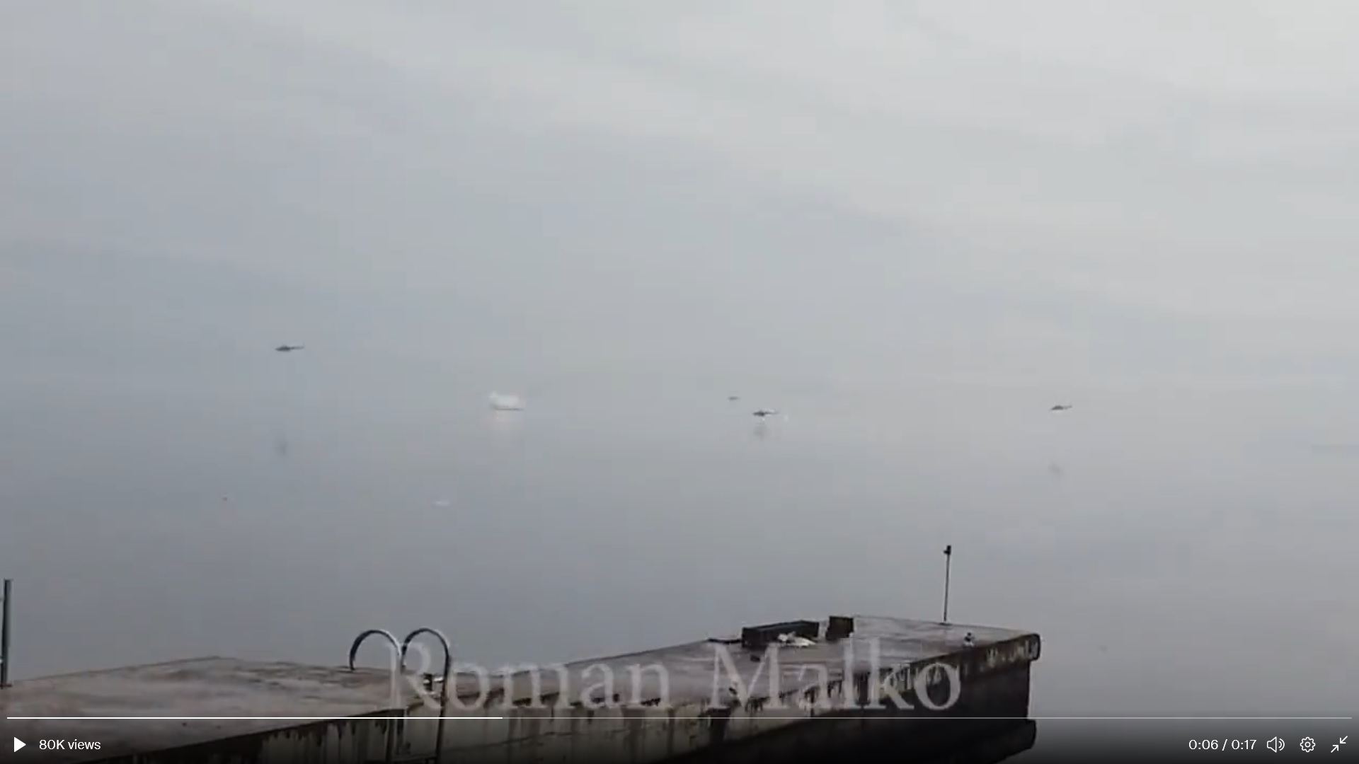 Video redzams, kā okupantu helikopteri lido pāri kādai ūdenskrātuvei, mēģinot atšaut termiskos māņu lādiņus, lai izvairītos no pārnēsājamajiem zenītraķešu uzbrukumiem.