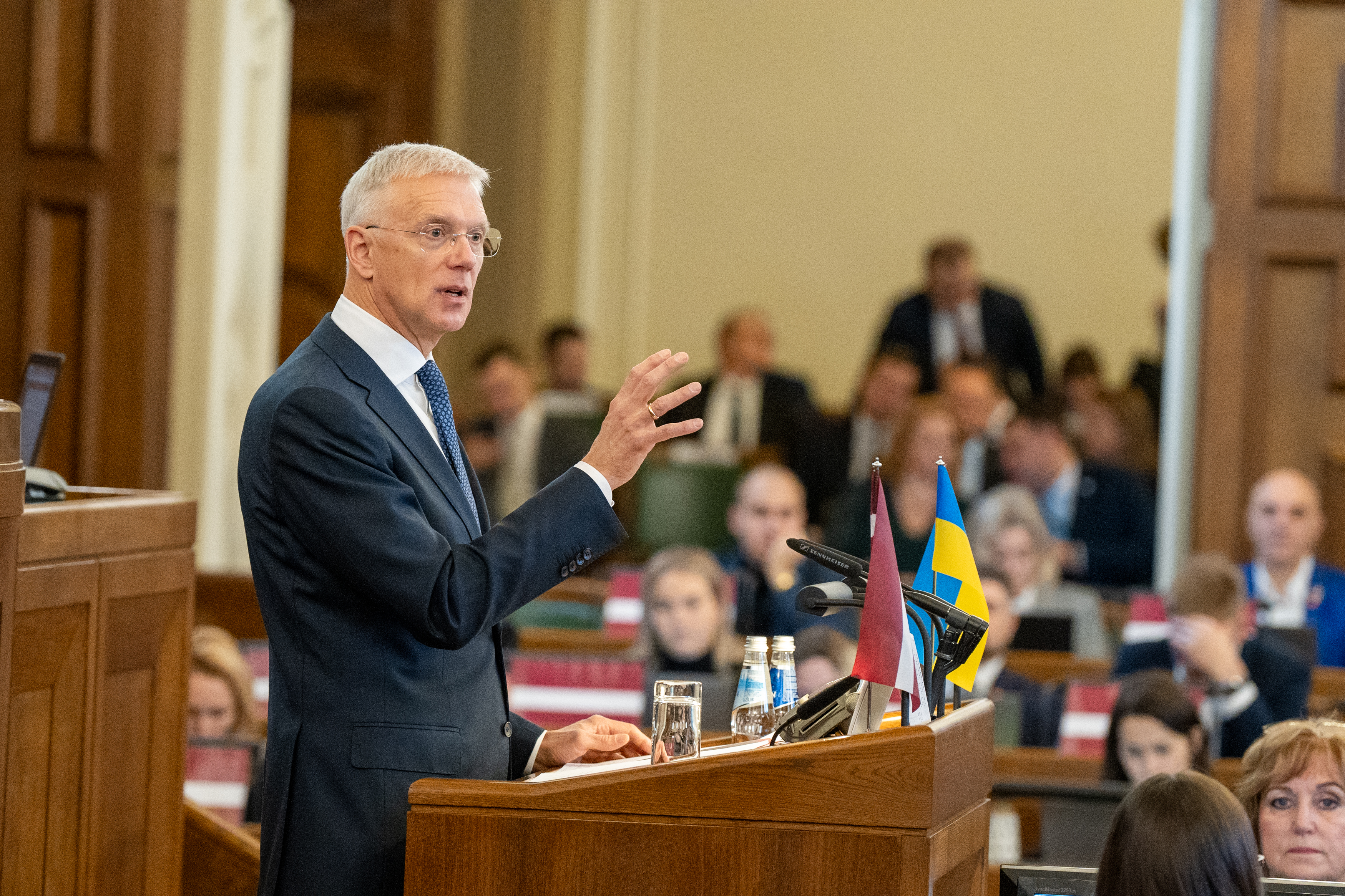 Kā katru gadu, Latvijas de jure atzīšanas gadadienas nedēļā Saeimā notiek ārpolitikas debates. Šogad pirmo reizi, kā ārlietu ministrs debašu atklāšanas runu sacīja Krišjānis Kariņš. Viņš uzsvēra sarežģīto starptautisko vidi, kurā Latvijai jācenšas uzsvērt likuma varu, kas ir viens no svarīgākajiem mazas valsts pastāvēšanas priekšnosacījumiem. Tāpat K. Kariņš norādīja uz turpmāku Latvijas spēcīgu iesaisti Eiropas Savienībā, NATO un ANO, kā arī nepārtrauktu atbalstu Ukrainai cīņā pret Krieviju līdz valsts uzvarai karā.