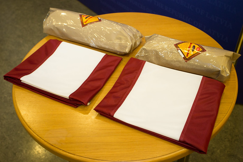 Jau tradicionāli svinīgajā pavadīšanas ceremonijā karavīri no aizsardzības nozares vadības saņēma ceļamaizi – Latvijas karogu un rudzu maizes klaipu.