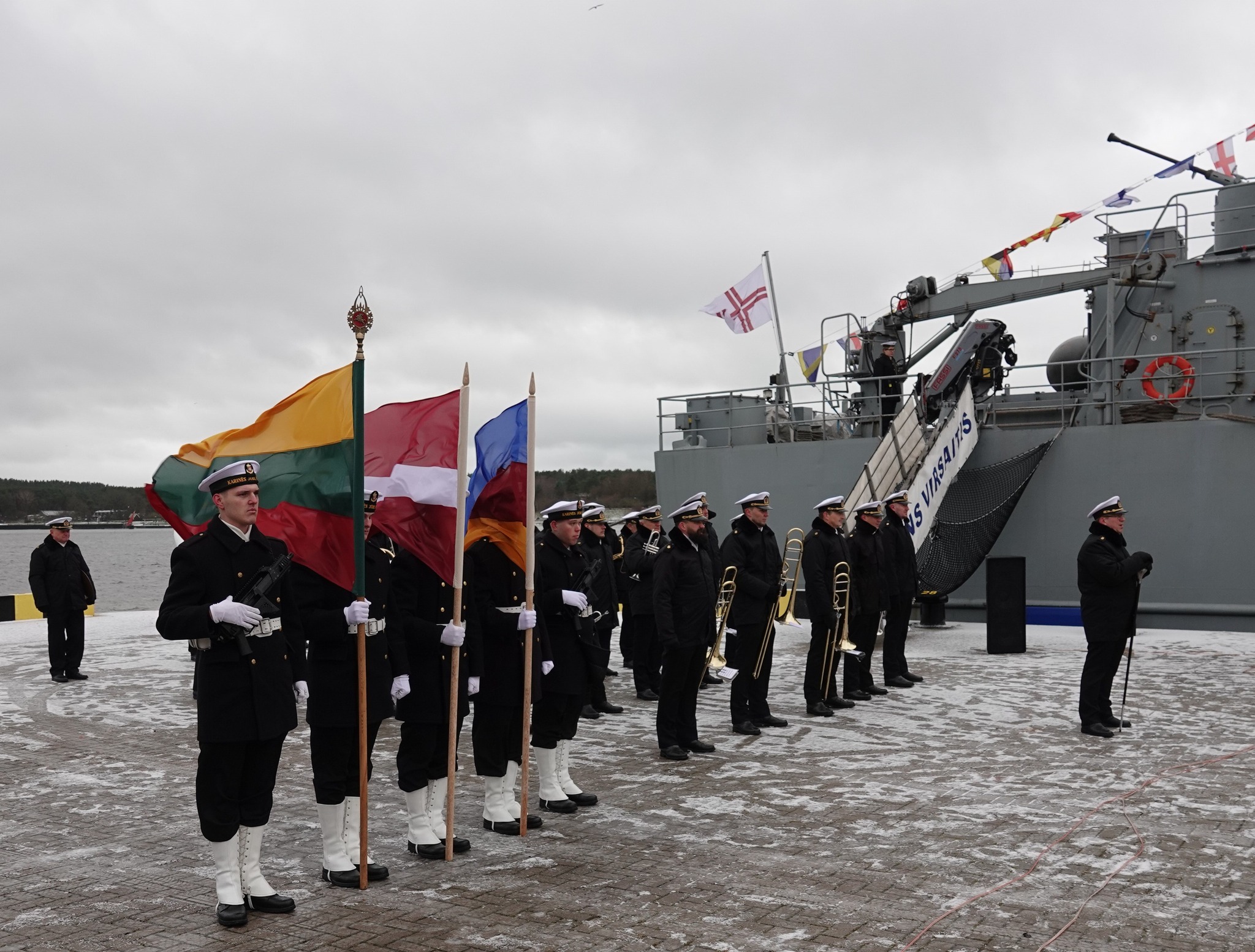 Svinīgajā komandiera maiņas ceremonijā piedalījās Latvijas Jūras spēku komandieris jūras kapteinis Māris Polencs, Lietuvas Jūras spēku komandieris jūras kapteinis Giedrjus Premenecks (Giedrius Premeneckas), kā arī citi pārstāvji no abu valstu jūras spēkiem.