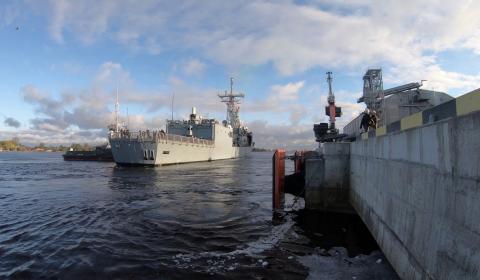 14. oktobrī notika pēdējā jaunbūvējamā Jūras spēku flotes krasta apsardzes patruļkuģa "Rēzekne" nolaišana ūdenī.